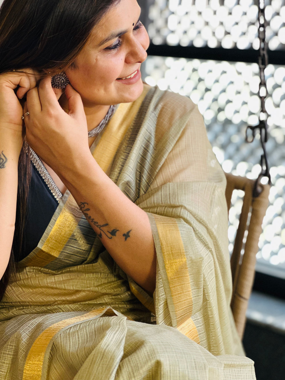 Experience the beauty of traditional craftsmanship with the Bhagalpuri Kota Doria Silk Saree by Izma, a perfect blend of elegance, comfort and heritage.