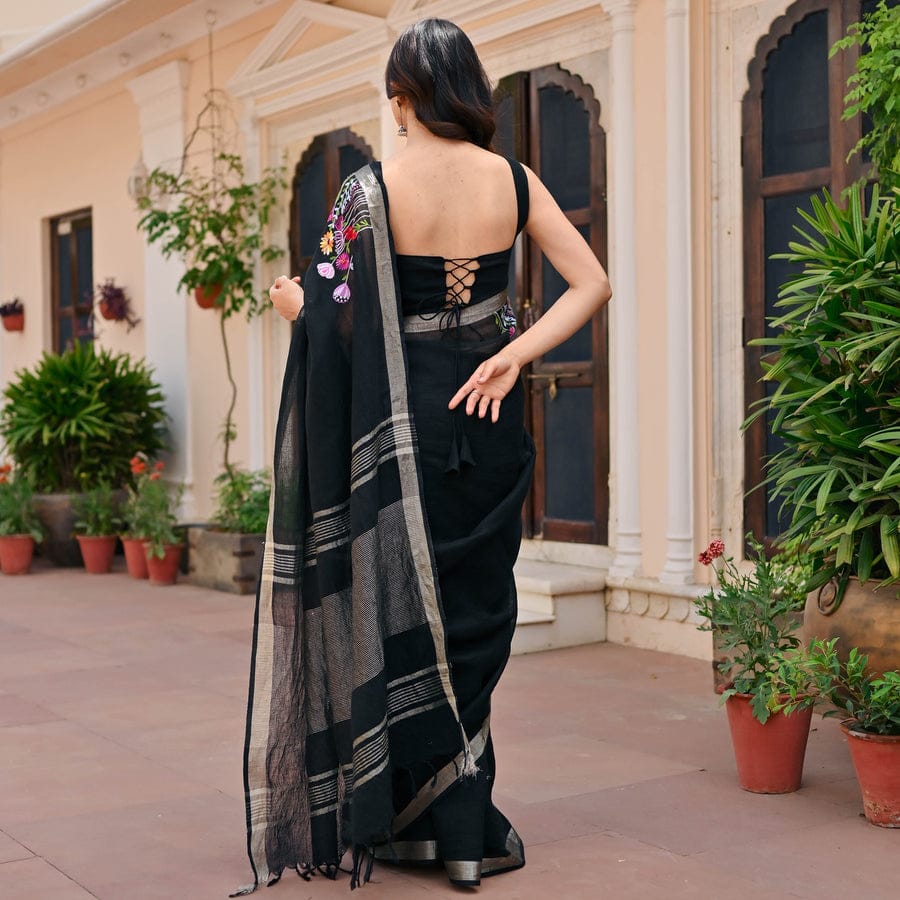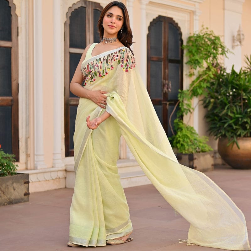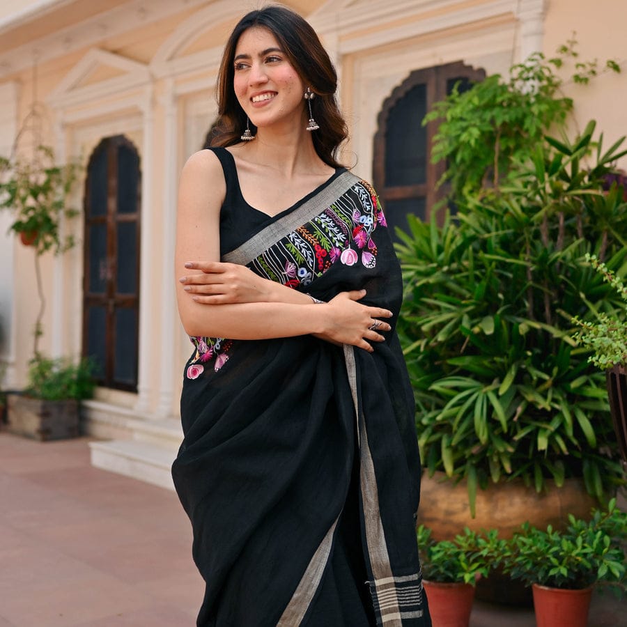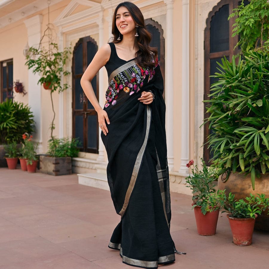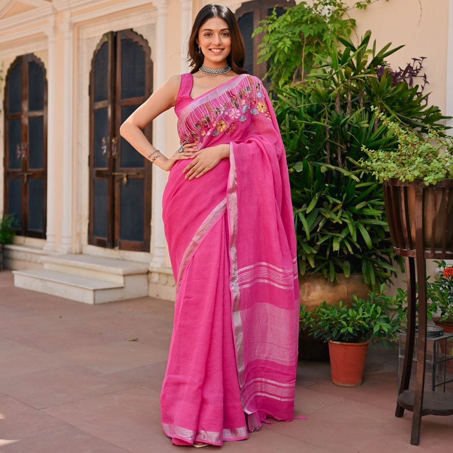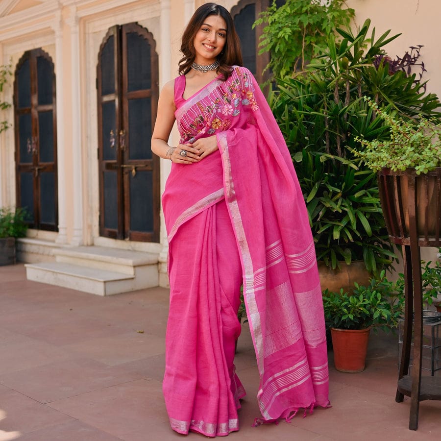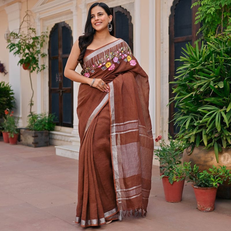 Experience the beauty of simplicity and craftsmanship with the Slub Linen Hand Embroidery Work Saree by Izma, designed for women who love comfort with elegant ethnic style.