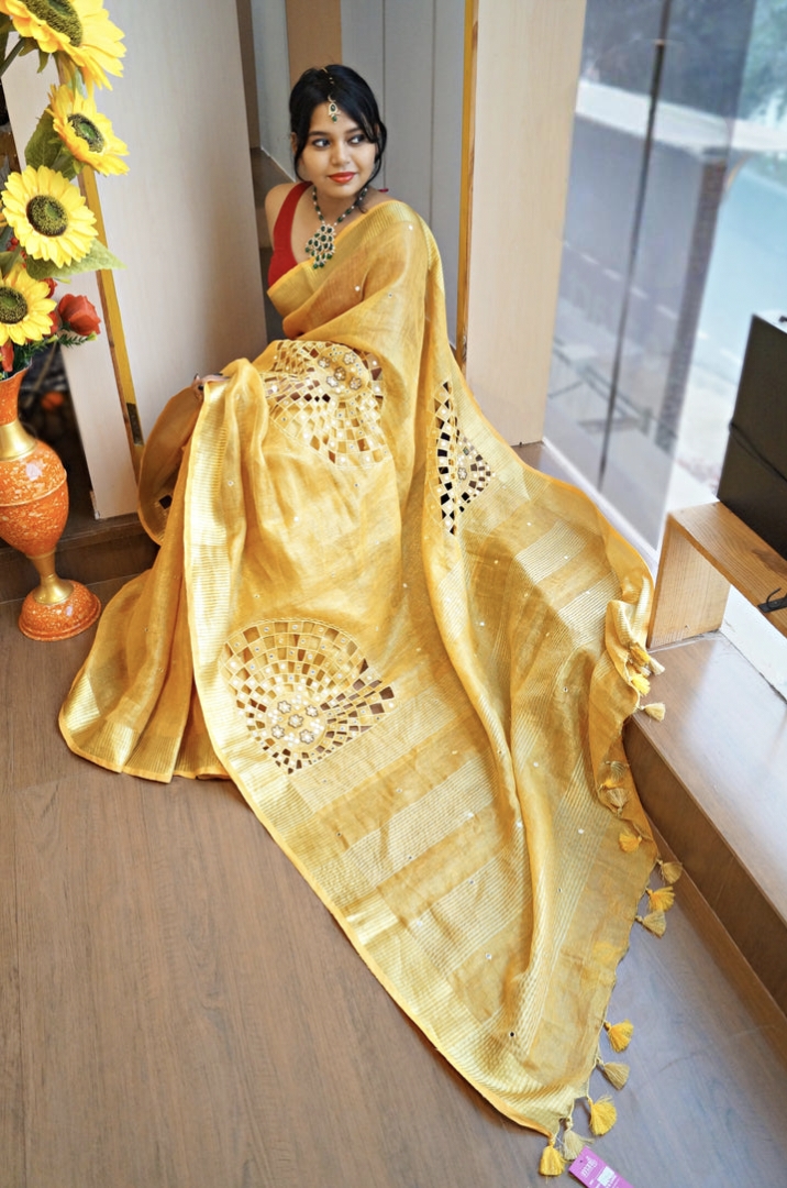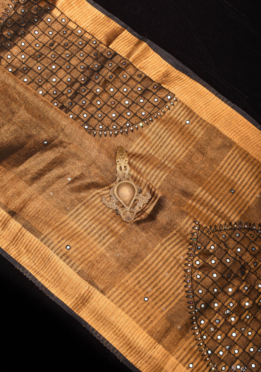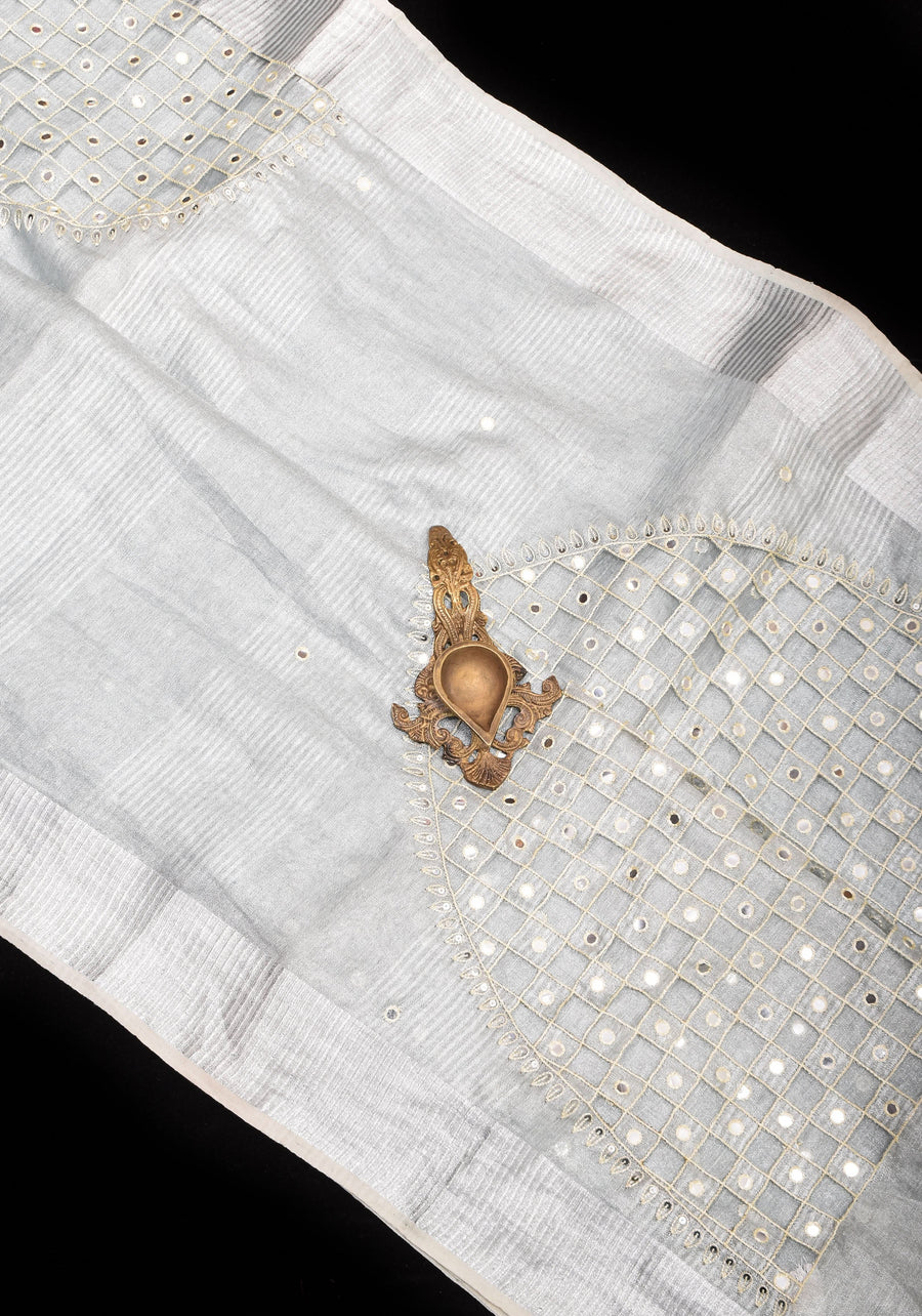 Tissue Linen Cutwork Saree with Running Blouse | Premium Handcrafted Cutwork – IZMA